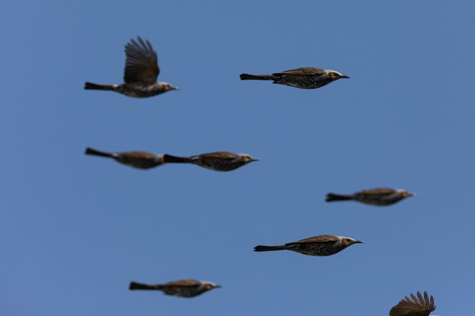 実際、鳥の生態に詳しい「都市鳥研究会」代表の唐沢孝一さんが、雑誌「サライ」(ウェブ版)に寄せた18年3月16日の記事でも、ヒヨドリは「短く羽ばたいて上昇した後、翼を畳んで滑空する飛び方」をすると説明されている。