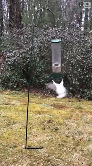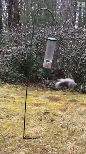 鳥の餌箱を狙う野性のリス サーカスのような「回転技」を披露 - livedoor