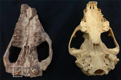 인도히우스(좌)와 너구리(우)의 머리뼈. 이 두 생물은 생긴 모습은 매우 비슷하나 분류학적인 거리는 꽤 멀다. ⓒwikimedia