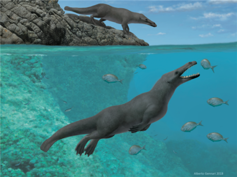 암불로케투스. 수생생활에 완벽히 적응한 체형을 지니고 있다.ⓒwikimedia