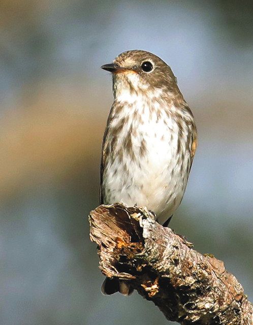 エゾビタキは、以前に掲載したコサメビタキとよく似ている。ついでに、サメビタキともよく似ている。この三種は見分けが難しい。特徴としては、胸の斑紋が他の二種よりはっきりしているところだが、これも個体差がありそうで…。野鳥ビギナーのカメラマンは、自分で判断できず悩んでしまった。 (高島市で、写真・文=横田信哉)