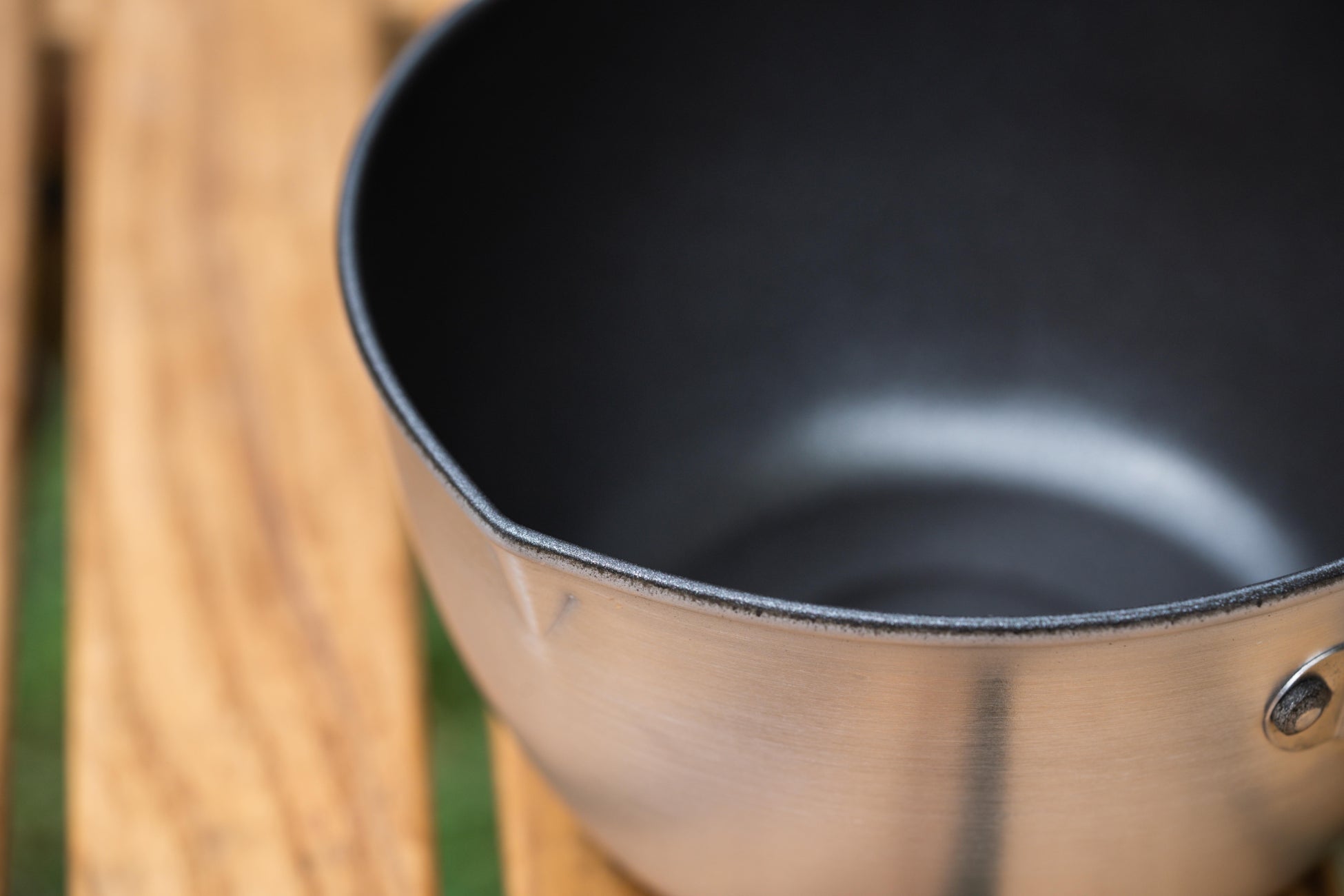 お湯が出ないキャンプ場では洗い物が大変。特に、これから冬キャンプでの洗い物は辛いもの。そこで、「シェラどんぶり2」では、中面に「フッ素コーティング」を採用。ごはんも炒め物も、飛躍的に焦げ付きにくくなりました。ごはんを炊いてもすっぽりと取れます。油をひかずに弱火でじっくりと目玉焼きを焼くことも可能。さらに、ウェットティッシュで拭くだけで大半の汚れは落ちます。キャンプ場で洗い物をせずに、家で持ち帰って洗うということもでき、キャンプ場周辺の環境にも良いです。